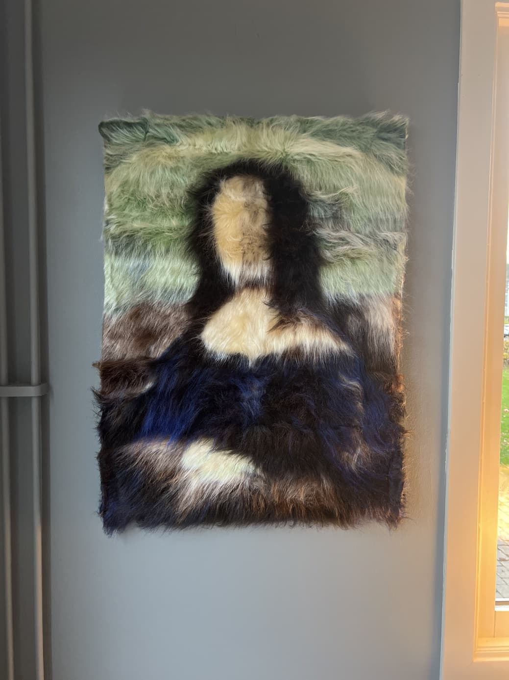 Just adore this very quirky wall hanging fuzzy Mona Lisa! I saw it in someone's home and just had to have it! It's very, very cool!